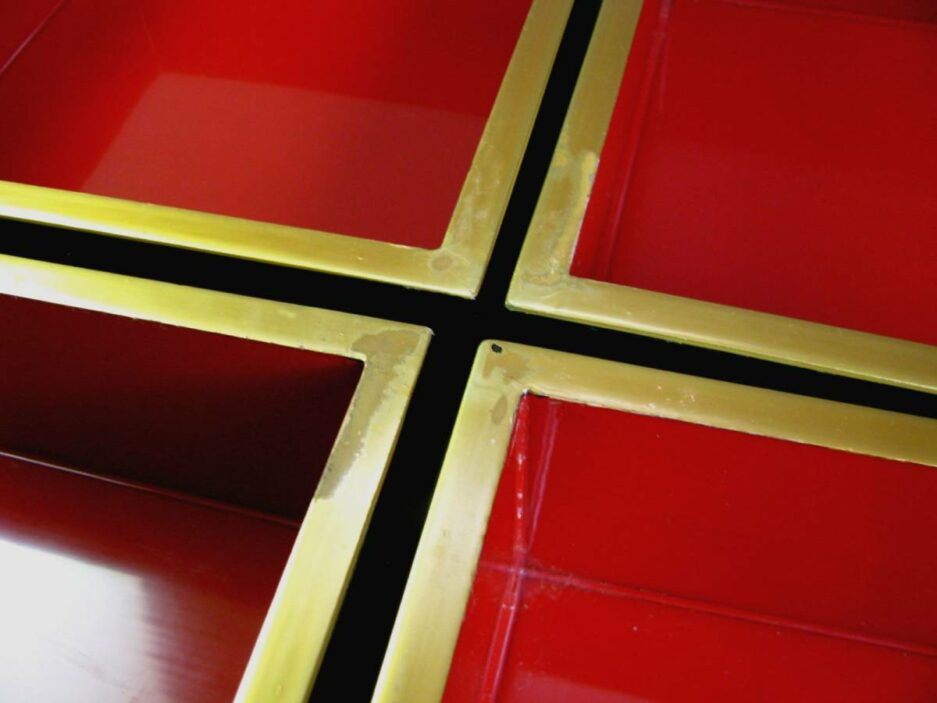 Rare boîte en laque Jūbako/Fuchidaka noir à 5 niveaux intérieur rouge avec socle.