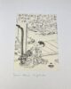 En partie supérieure, un texte en kuzushiji (écriture cursive japonaise) accompagne l’image qu’il est possible de traduire comme ceci :