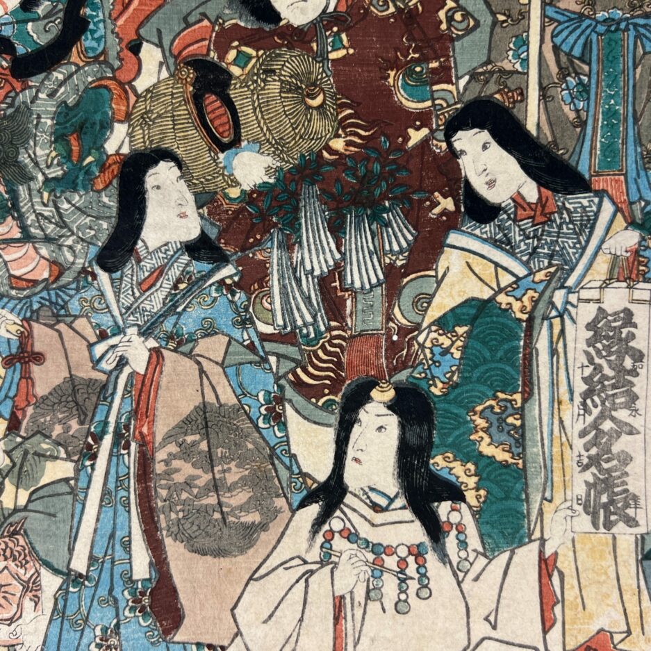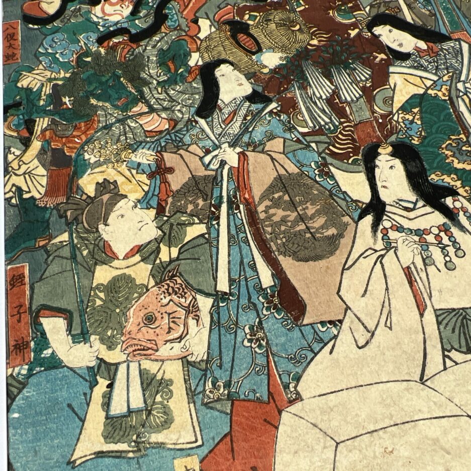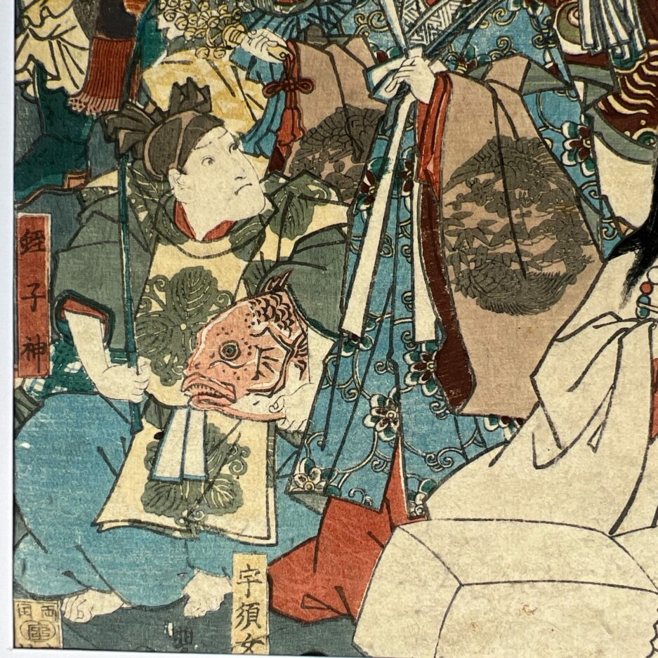 Estampe japonaise par Toyokuni représentant la rencontre des dieux shintō Taisha en-musubi zu – Meiji XIXe s.