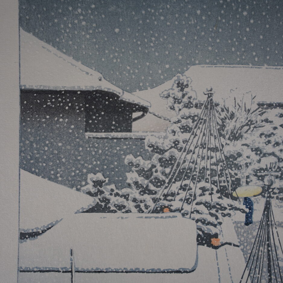 Estampe intitulée la Neige à Daichi par Kawase Hasui (1883-1957).