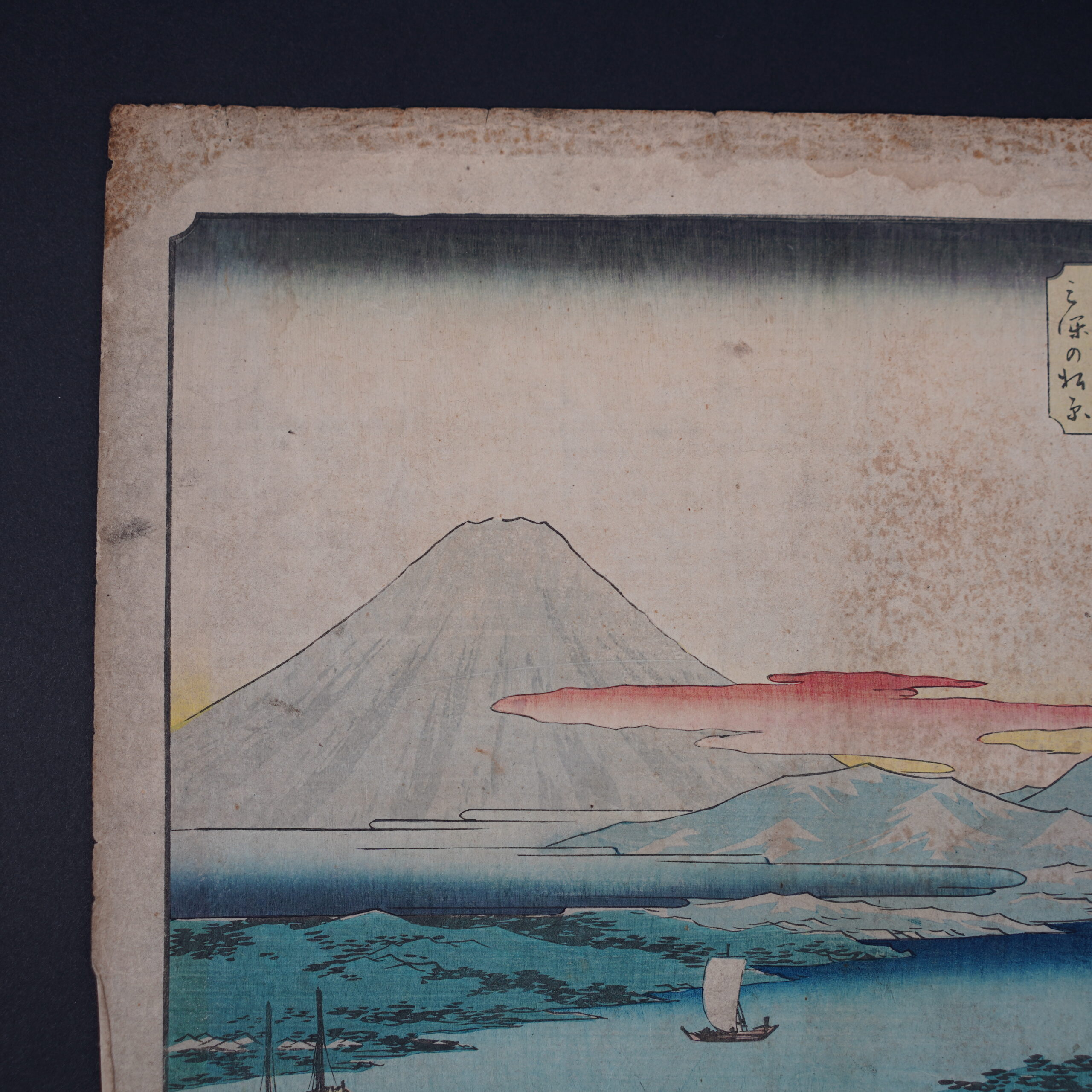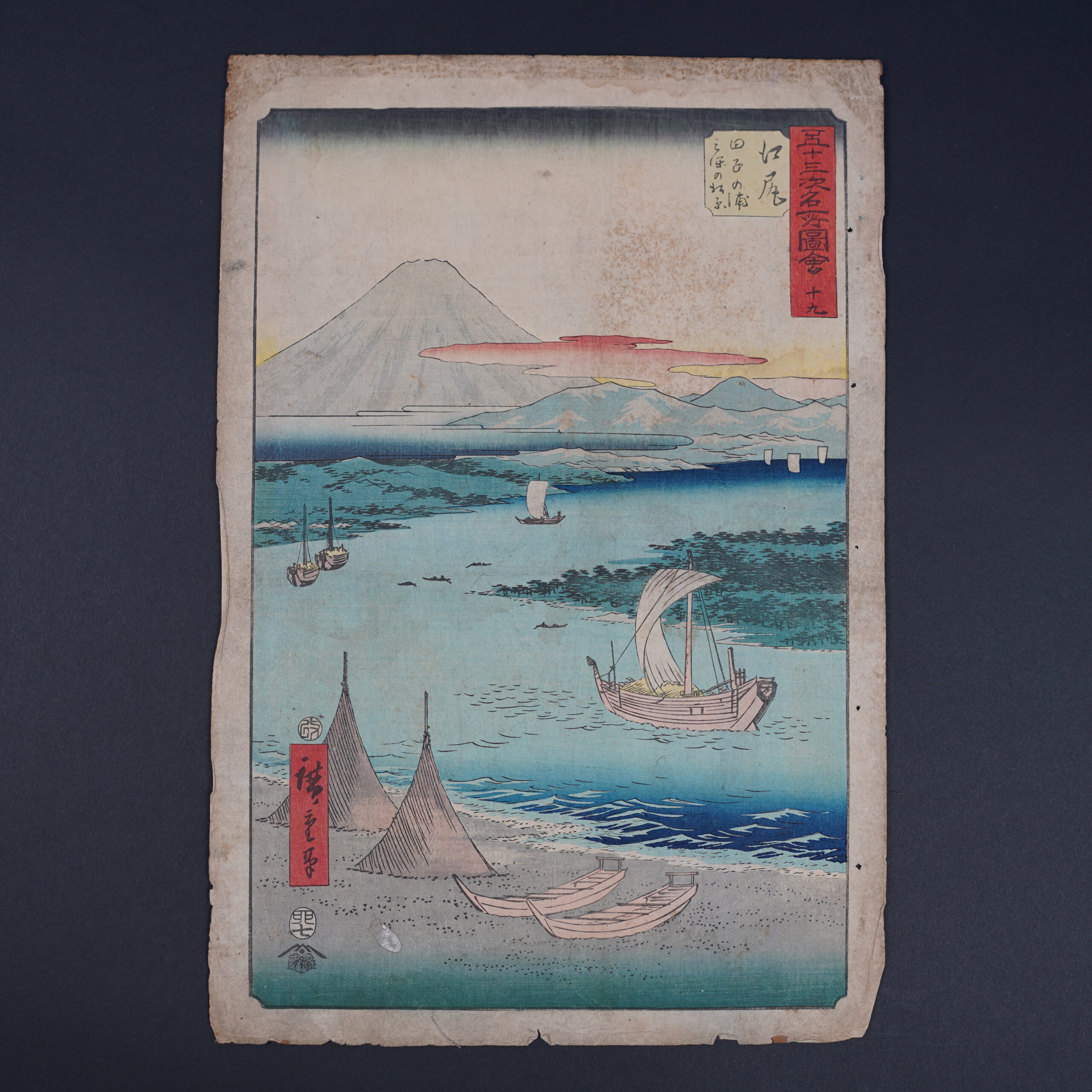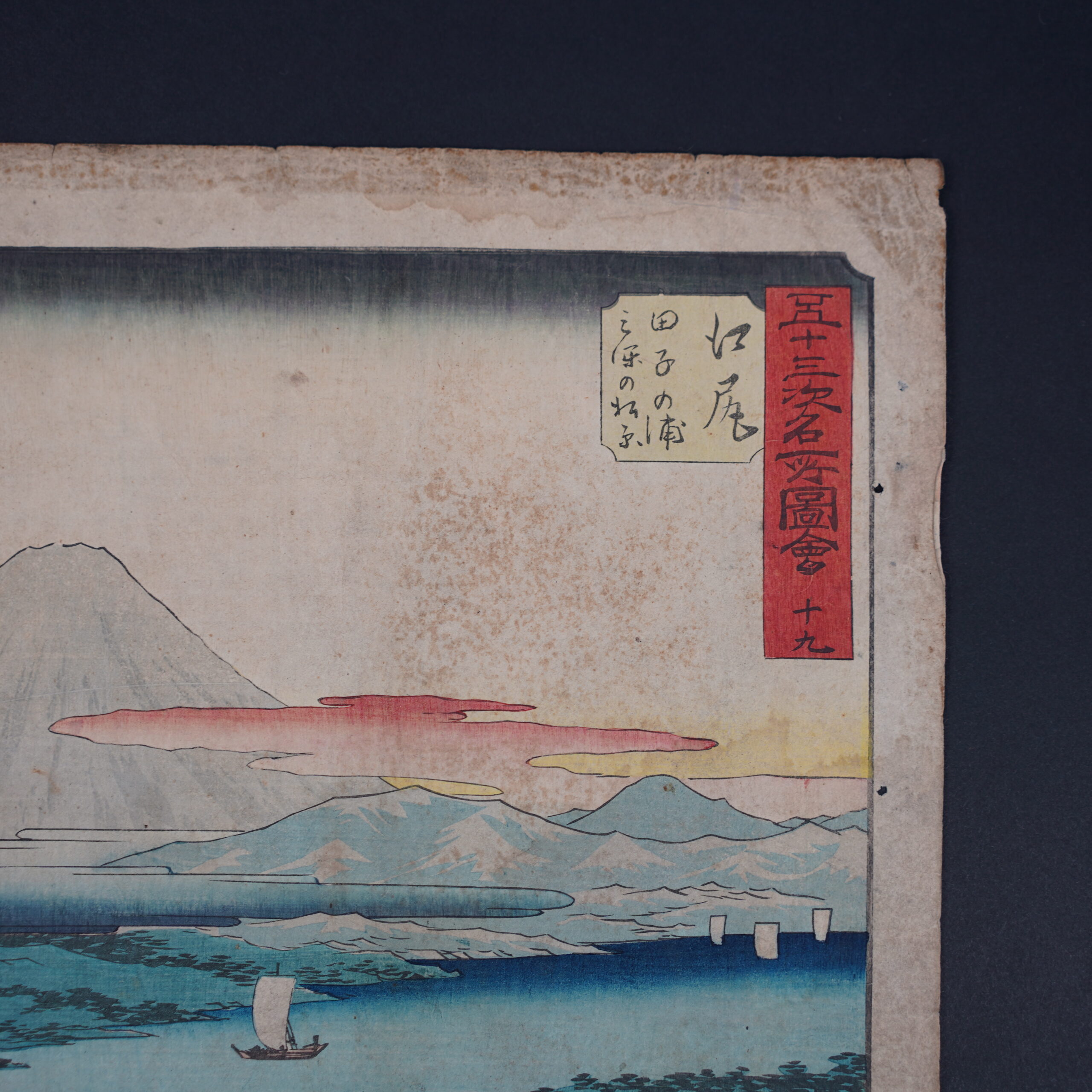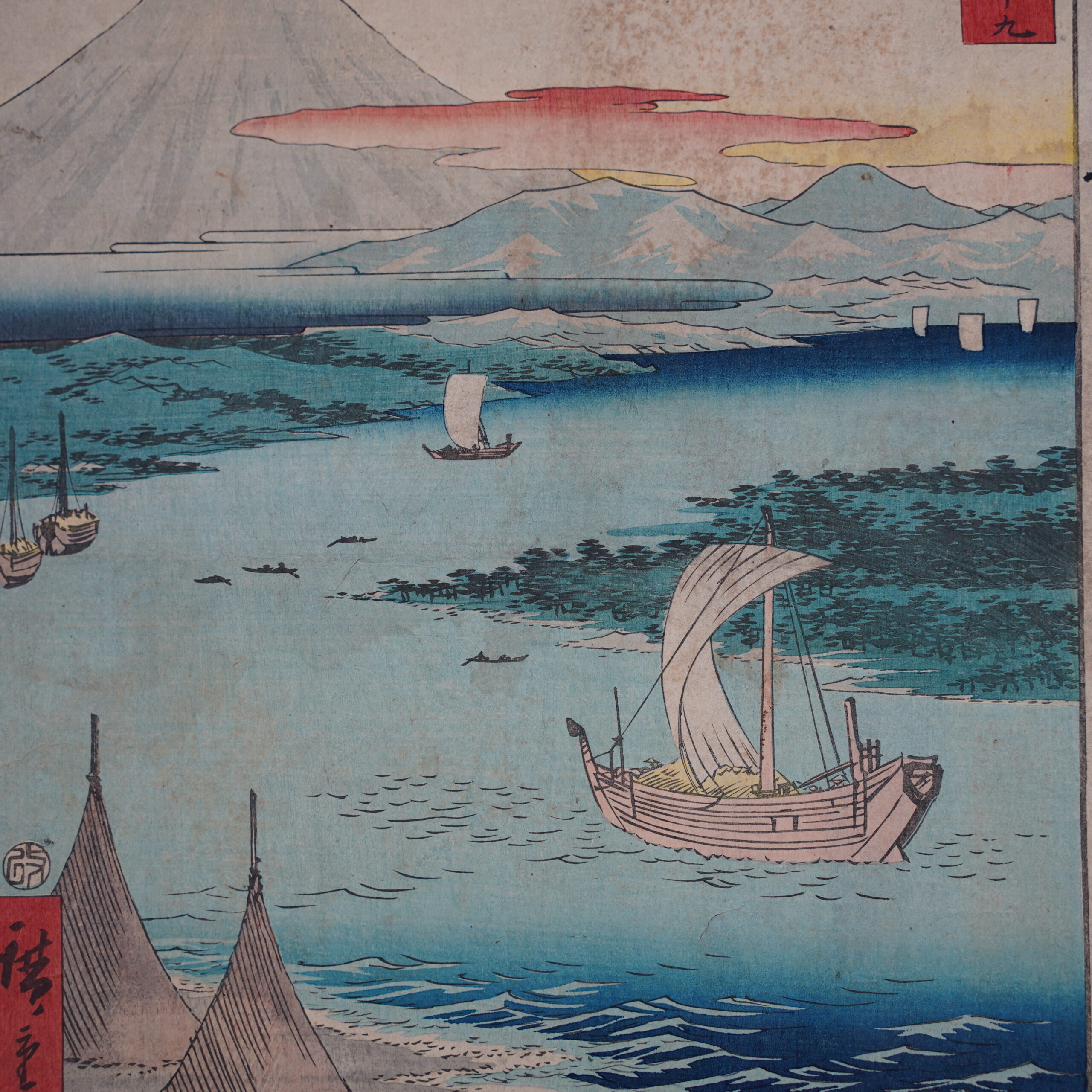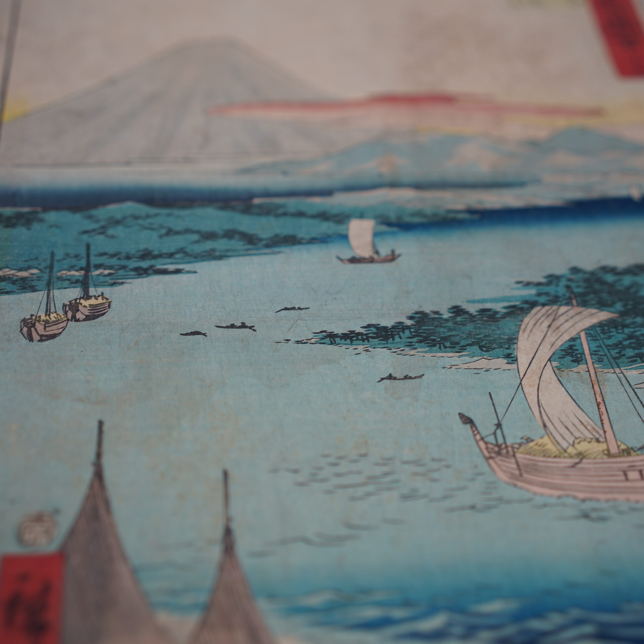 Estampe de Utagawa Hiroshige (1797-1858) intitulée « Eijiri, Baie de Tago et pinède de Miho » de la série des 53 stations du Tokaido.