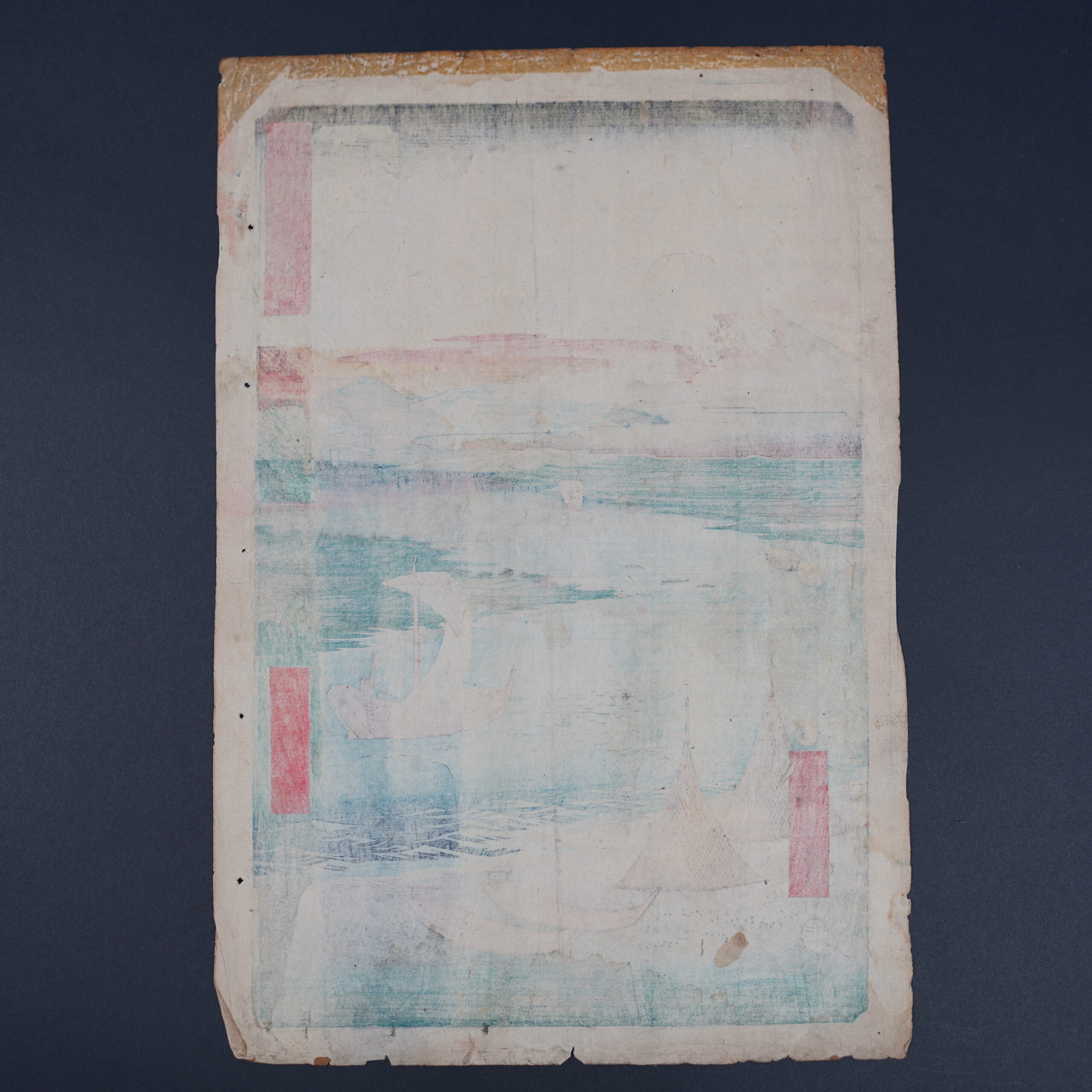 Composition dans le pur style du Maître Hiroshige avec la présence du Mont Fuji incontournable.