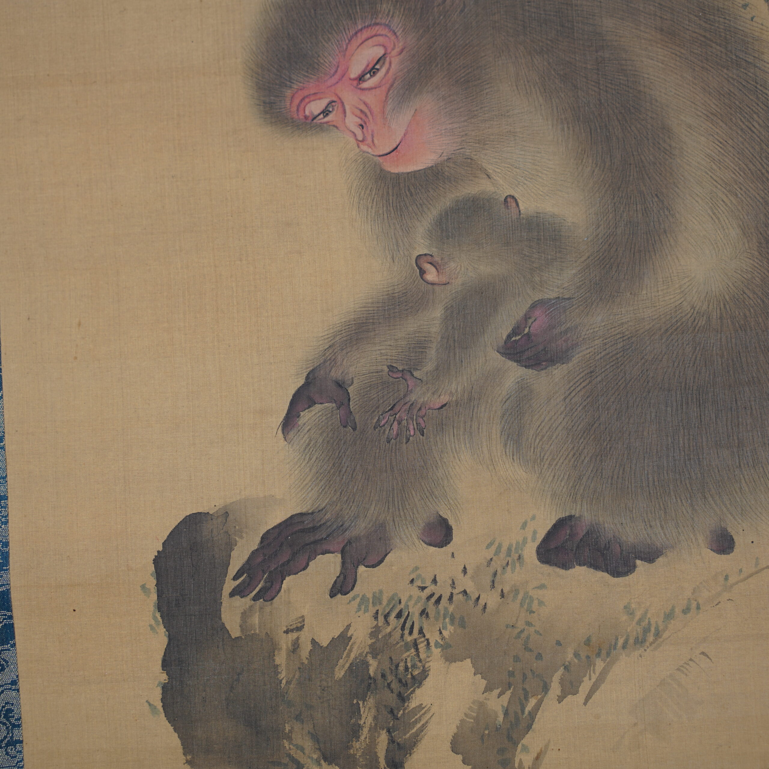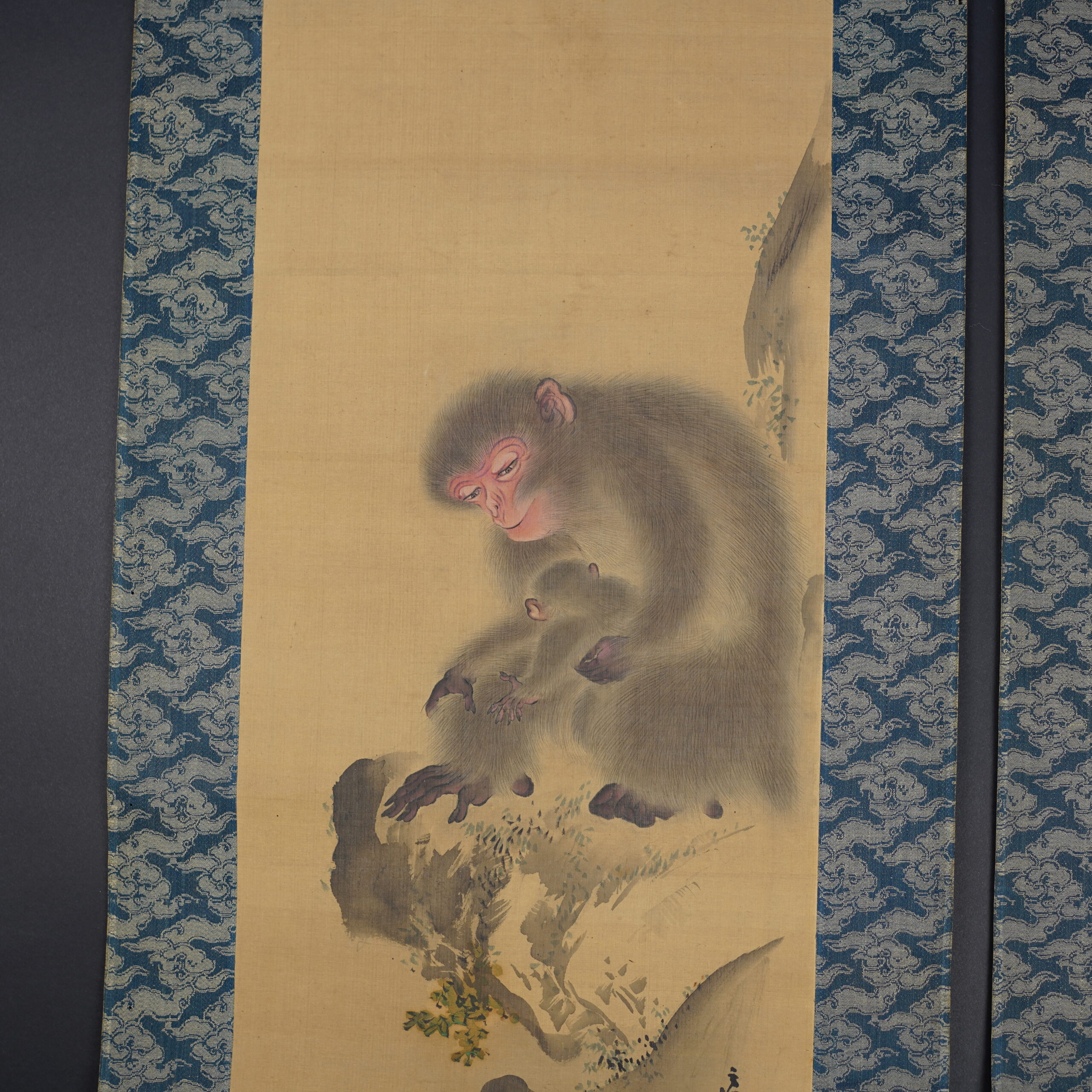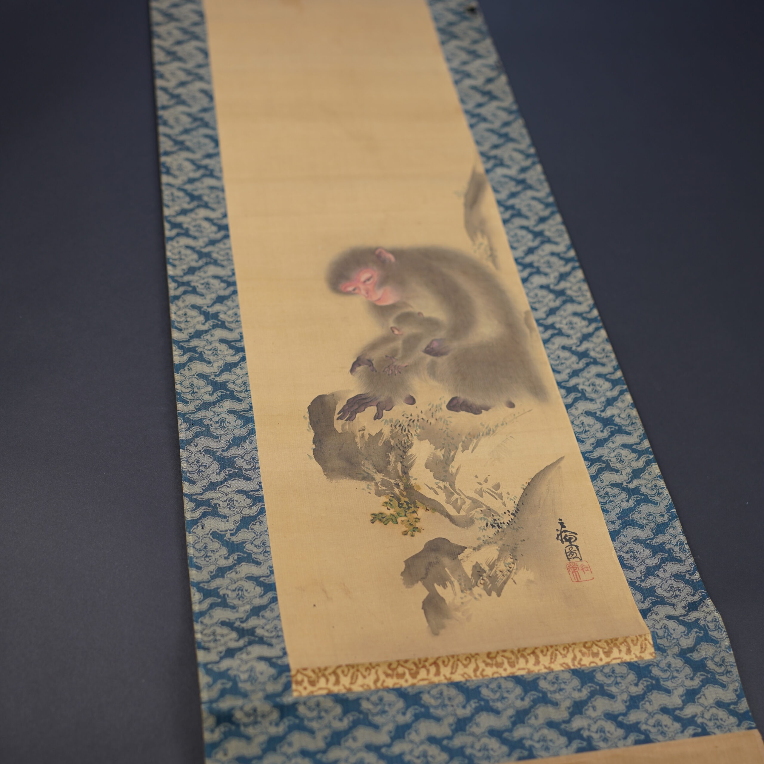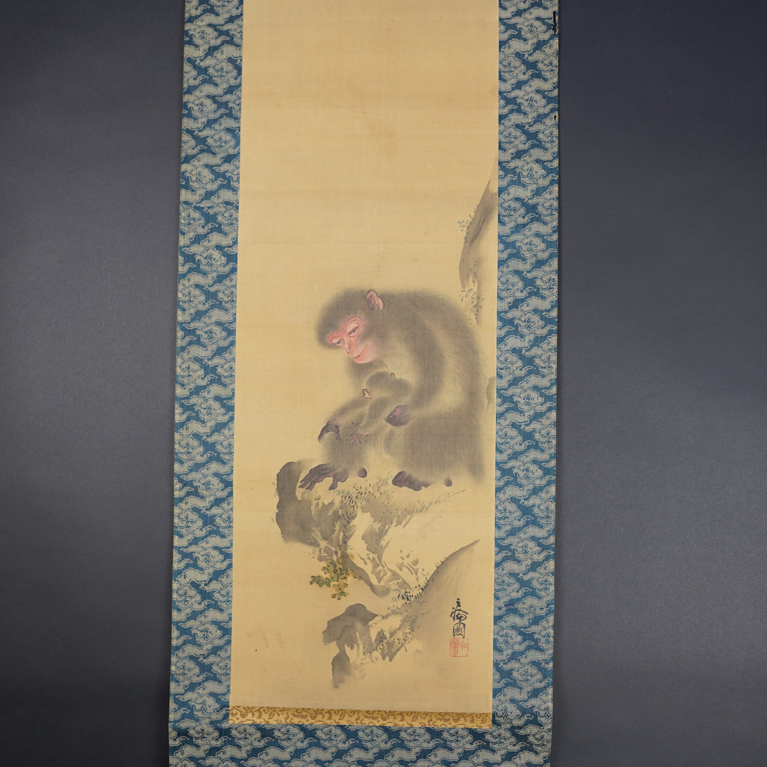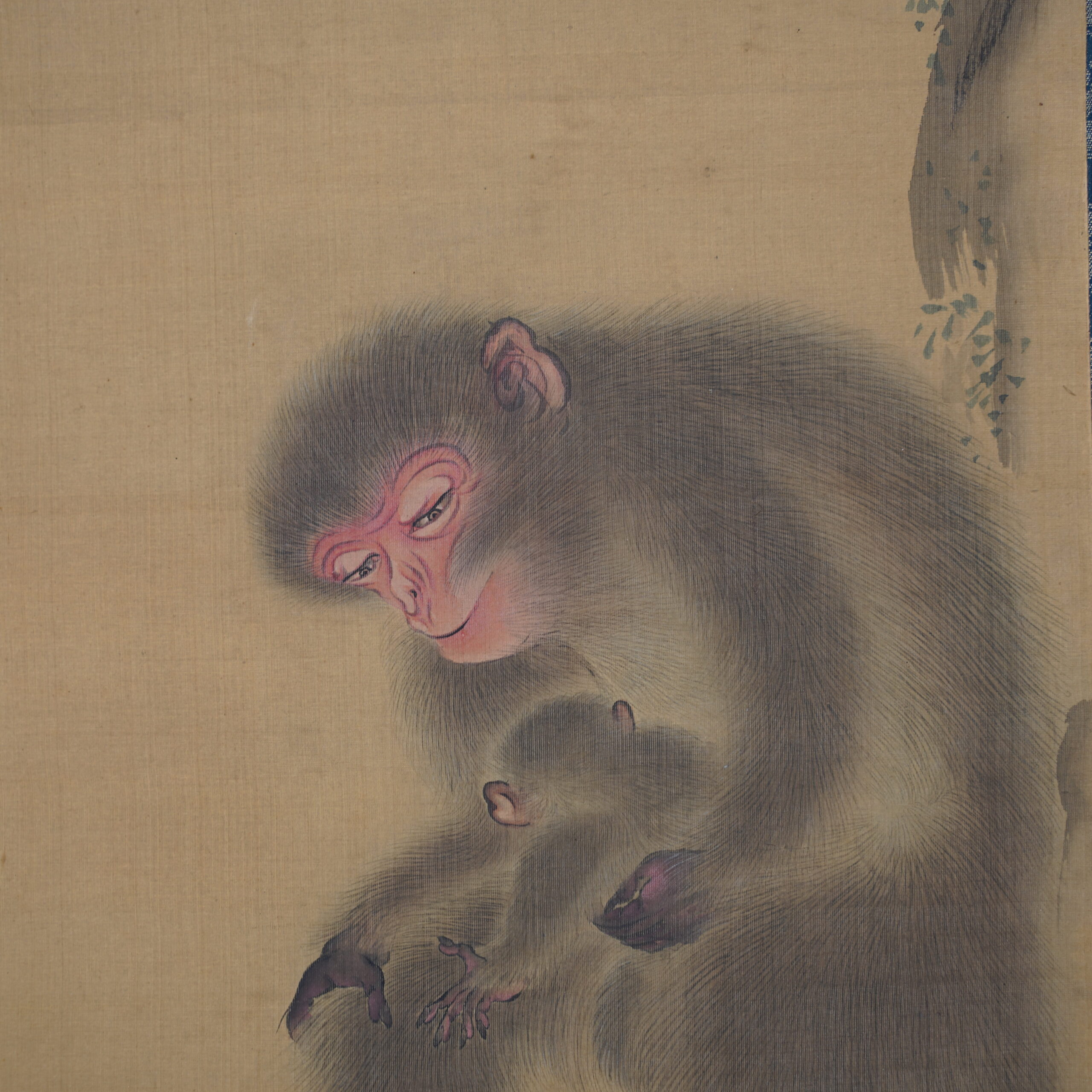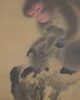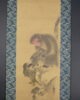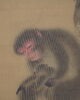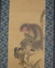 Kakejiku (kakemono), peinture à l’encre représentant un singe macaque et son petit par Baien.