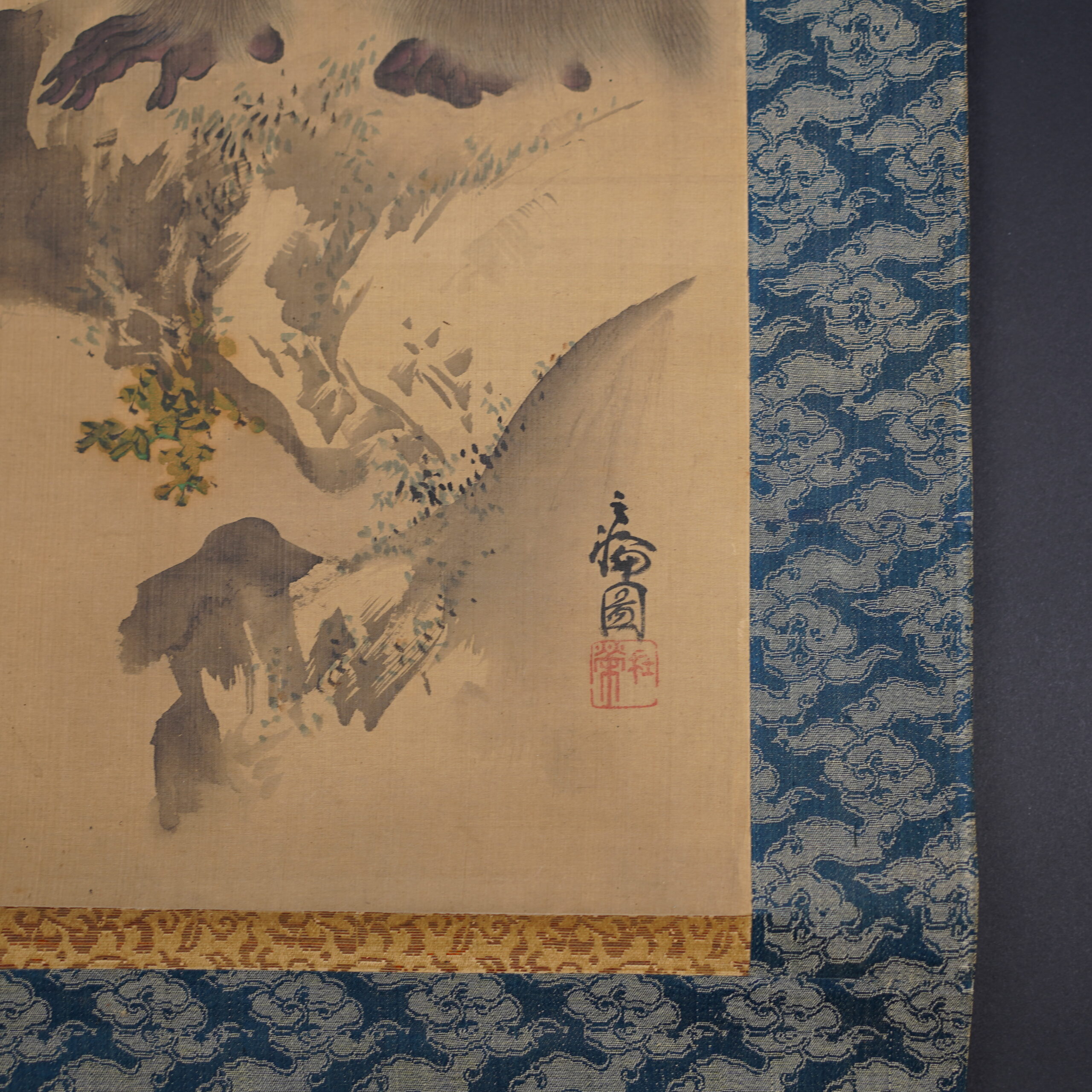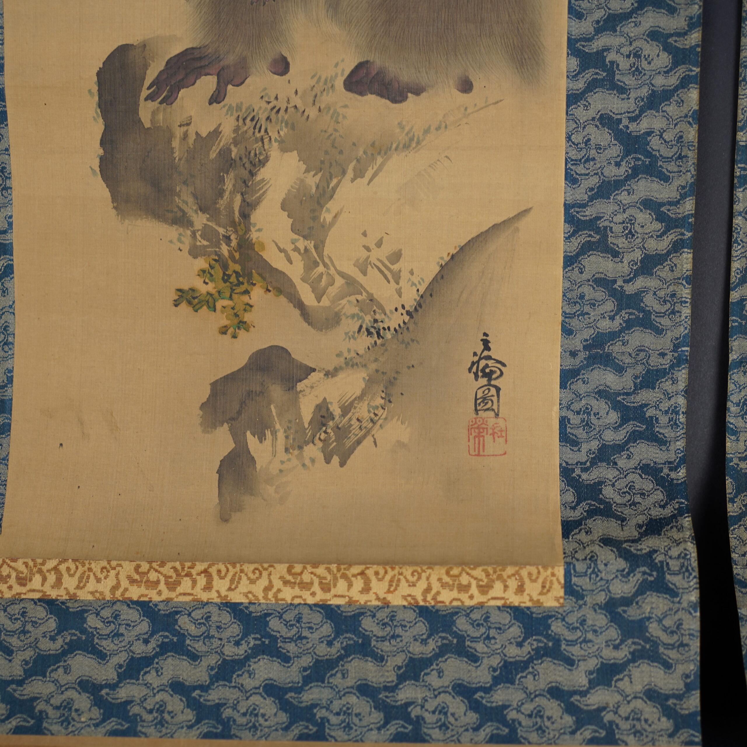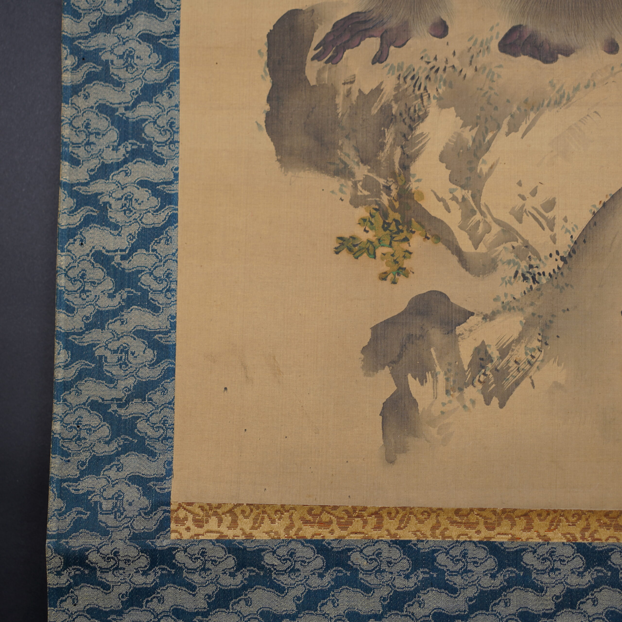 Le travail est fin, expressif, avec une belle technique de poils et un traitement doux des roches : c’est une bonne peinture animalière de Kyoto, souvent prisée en Occident.