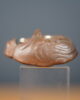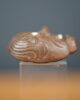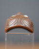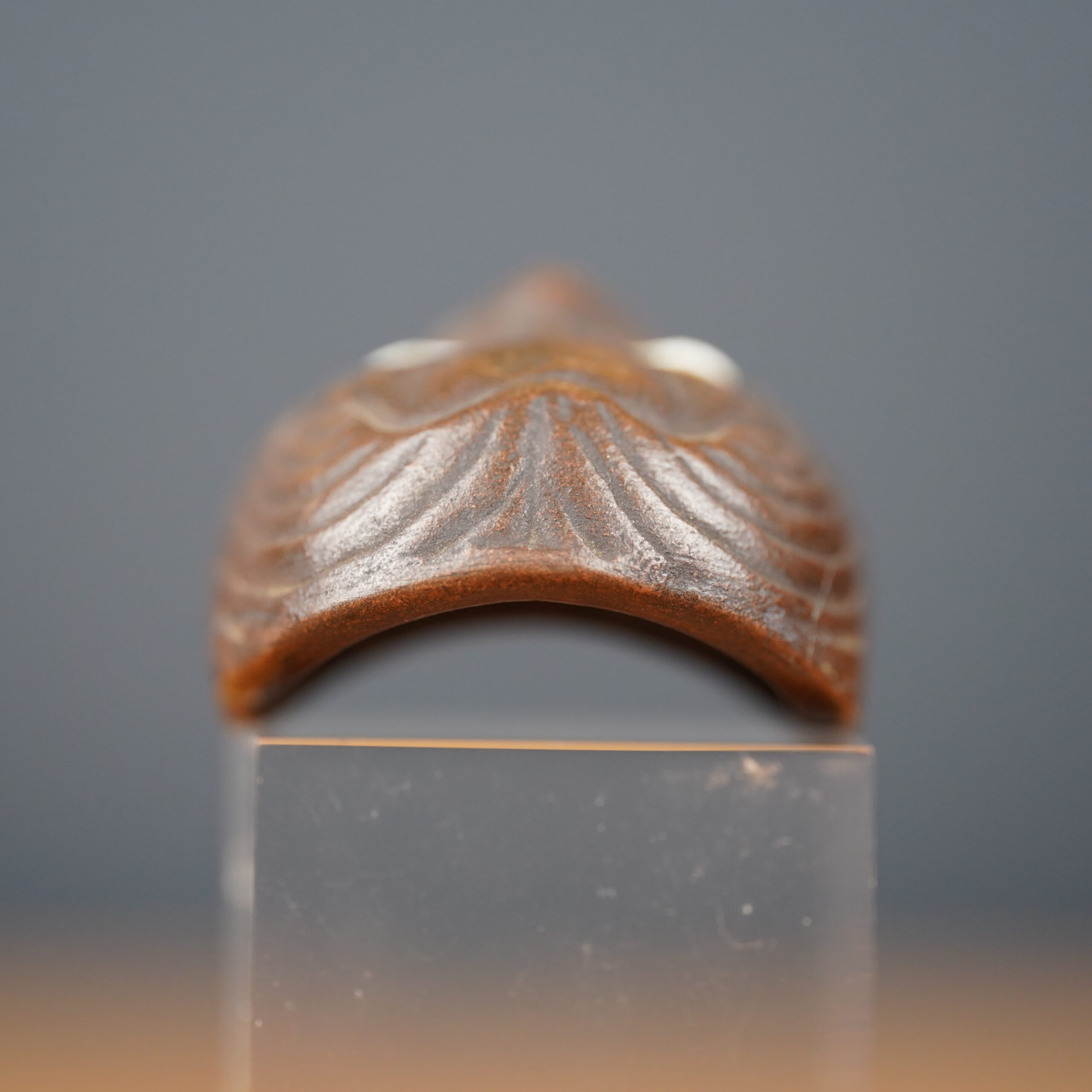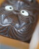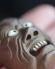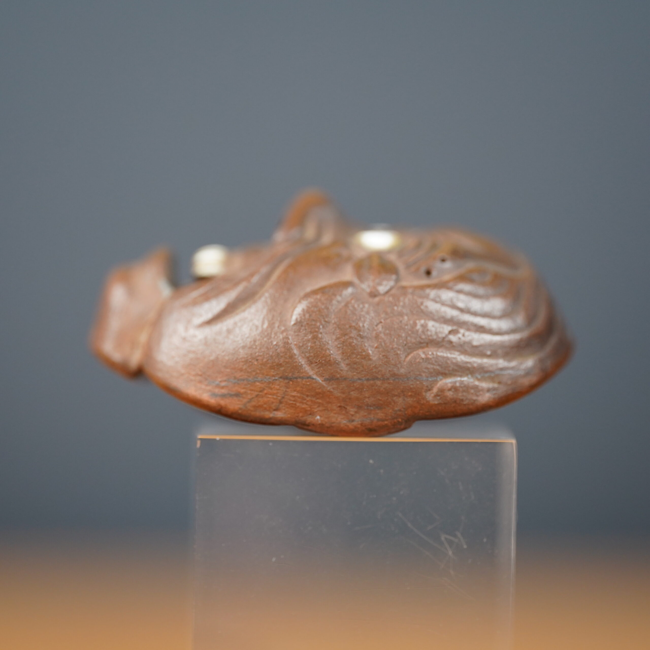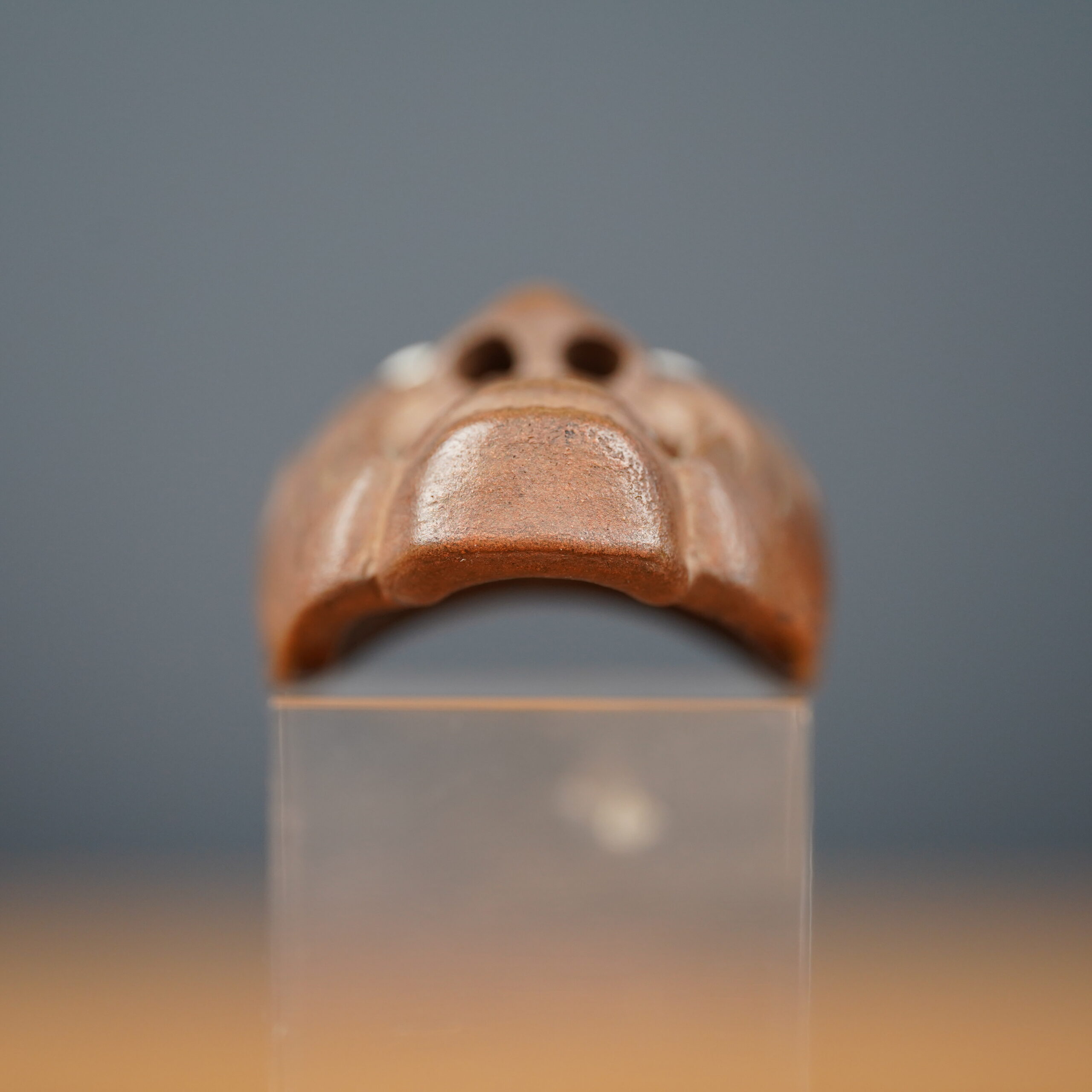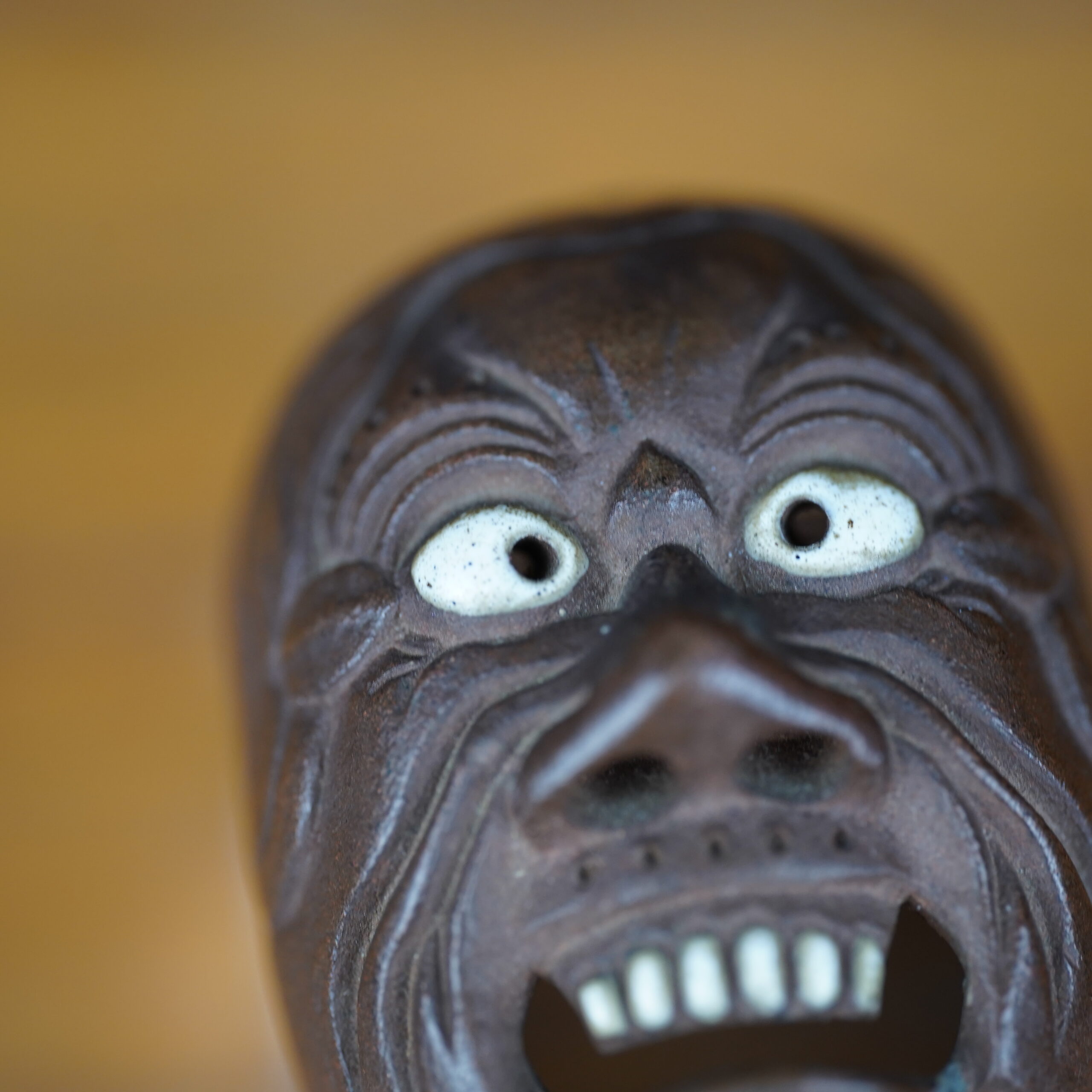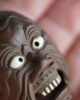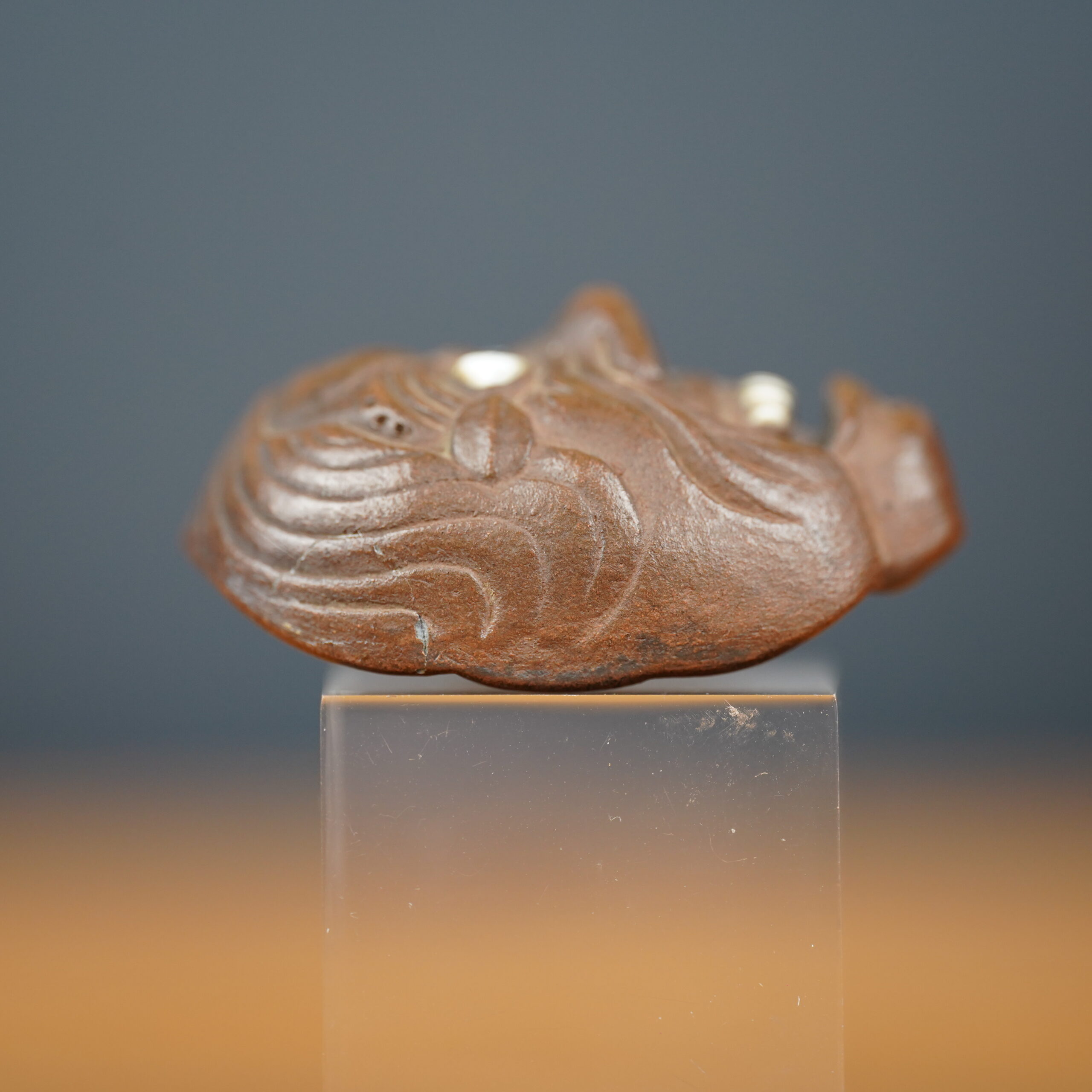 Netsuke en céramique de type onko-yaki représentant un masque de démon (oni) aux yeux blancs, dents émaillées blanches.
