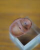Le visage présente la bouche ronde en “O”, caractéristique du personnage qui souffle dans un tuyau pour attiser le feu mais ici dans une version plus stylisée que d’habitude. Version même plus « humaine », moins