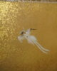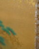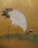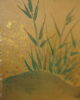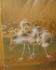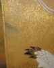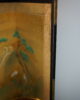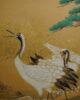 Petit paravent à six feuilles à décor de grues, canards, oiseaux dans un paysage de pins et de cascade.