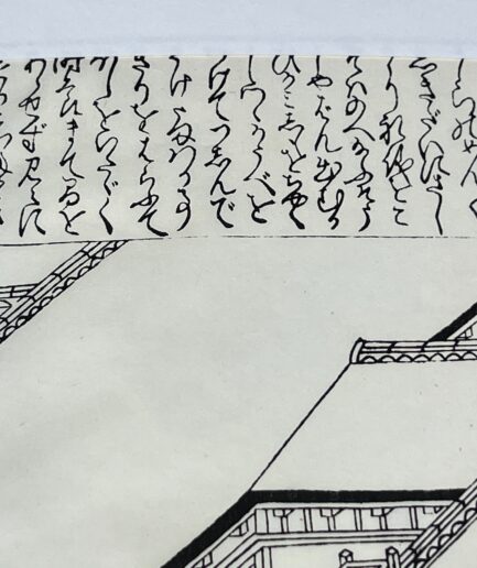 Estampe japonaise e-Hon représentant une vue architecturale japonaise par Toshinobu – Meiji XIXe s.