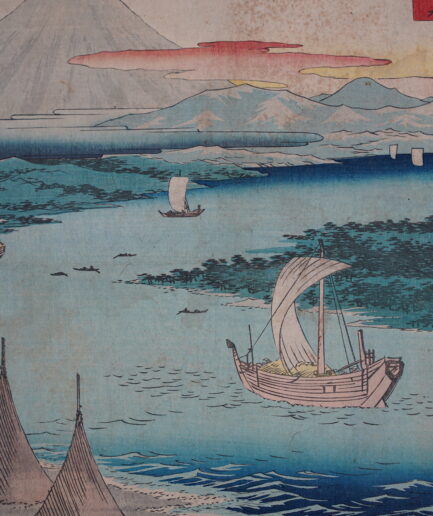 Estampe ukiyo-e par Hiroshige intitulée « Eijiri, Baie de Tago et pinède de Miho » de la série des 53 stations du Tokaido – Meiji XIXe s.